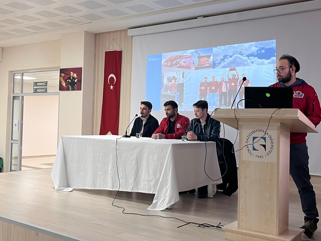 The promotional event organized by the TEKNOFEST and Competitions Coordination Office of Tokat Gaziosmanpaşa University (TOGÜ) at the Turhal Faculty of Applied Sciences was held with high attendance. The program was attended by Prof. Dr. Ebubekir Altuntaş, Dean of the Turhal Faculty of Applied Sciences; Dr. Ebubekir Yaşar, Director of the Turhal Vocational School; numerous academics; and students from the faculty and vocational school.